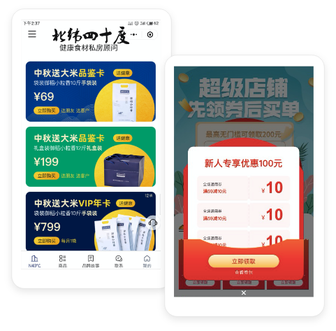 挑选大米作为爆品引流,利用共享优惠券裂变获客